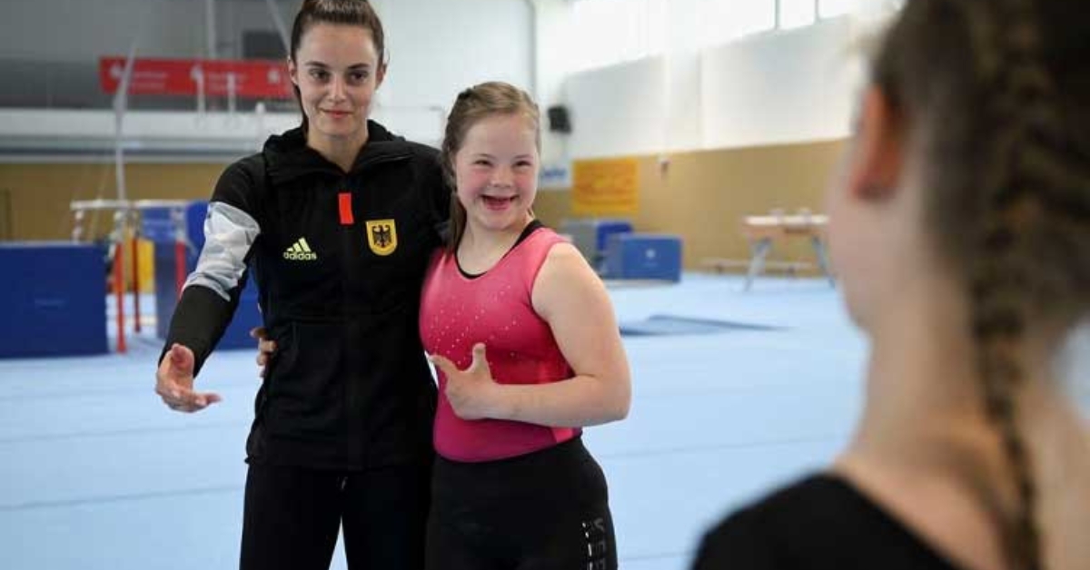 13-year-old Annabelle, who has Down’s syndrome, is competing against over 100 gymnasts
