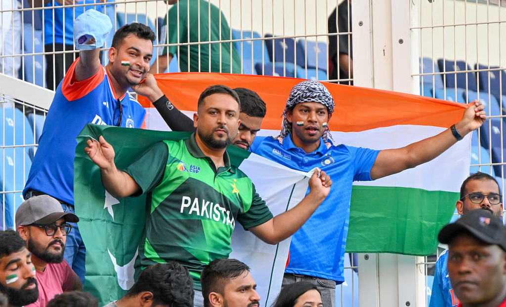 In the Dubai International Stadium, the DJ played the chart-topping songs from both sides of the border, while the Asia Cup clash between famed rivals, India and Pakistan, certainly lacked sporting contest elbows.
