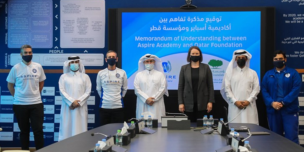 Aspire Academy and Qatar Foundation have agreed to extend their ongoing two-year football training agreement following the approval of a Memorandum of Understanding (MoU), that was signed by Ali Salem Afifa, Deputy Director General of Aspire Academy, and Amy Johnson, Director of Community Engagement at Qatar Foundation, on Wednesday, November 11th,2020. Taking part and present at the signing ceremony were Aspire Technical Director of Football, Edorta Murua, Aspire Football Administration manager, Saeed Al-Marri and Hamad Al Shaiba, Qatar Foundation Sports Programming Specialist.