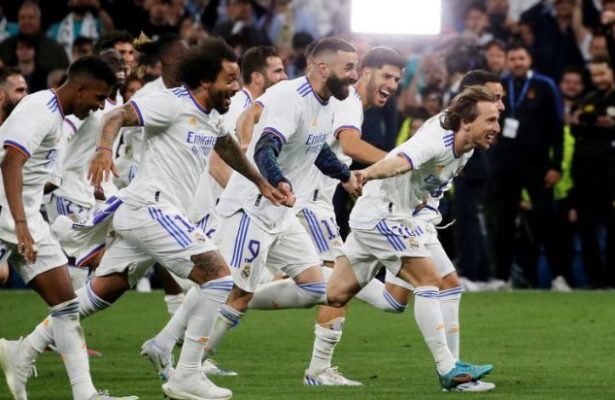 Real Madrid fought back from the brink of elimination to beat Manchester City 3-1 after extra time and 6-5 on aggregate in an enthralling and dramatic Champions League semi-final on Wednesday. City led 1-0 on the night and 5-3 on aggregate when Riyad Mahrez scored after 73 minutes but Real substitute Rodrygo equalised in the last minute of normal time and headed home one minute later to level the tie at 5-5. Five minutes into extra time Karim Benzema converted a penalty awarded