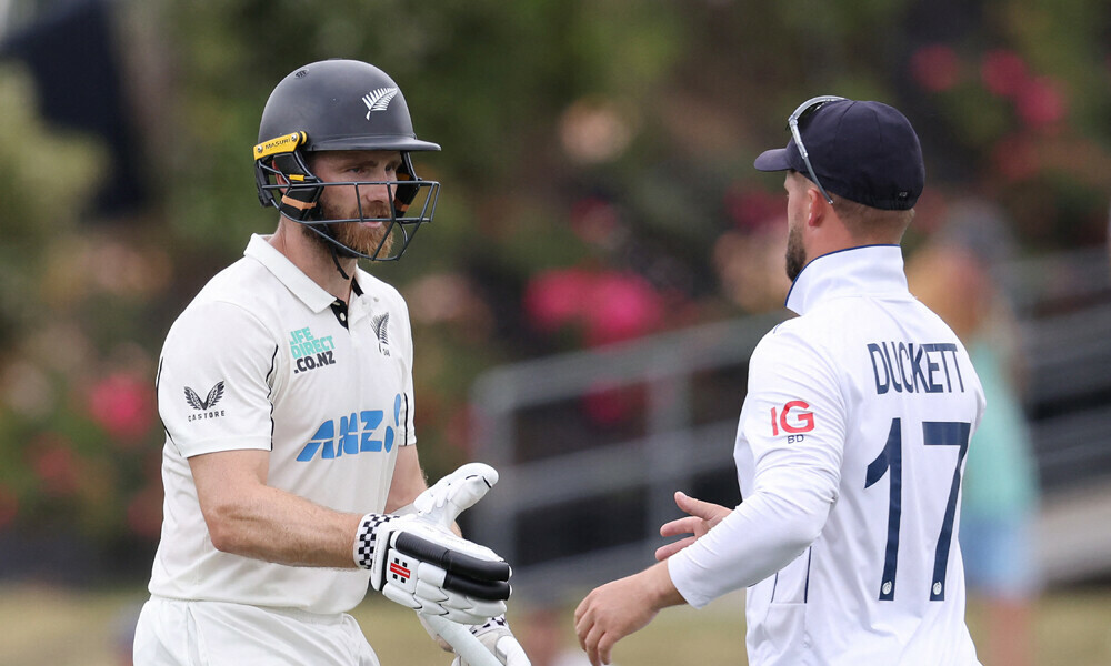 The first session went missing due to rain and Williamson came out on top under Seddon Park lights, the Black Caps led 340- 657 until England got them out for 453 in the last hour.