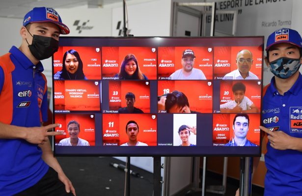 On Monday the 9th and Wednesday the 11th of November, the Accenture CHAMPS virtual workshops returned at the Circuit Ricardo Tormo in Valencia. Red Bull KTM Tech 3 riders Ayumu Sasaki and Deniz¨Öncü joined the first workshop, before the second saw the return of Kaito Toba (Red Bull KTM Ajo), this time joined by new attendee Billy Van Eerde whilst on site for the Red Bull MotoGP Rookies Cup.On Monday it was the Idemitsu Asia Talent Cup riders hailing from closer timezones to Europe who