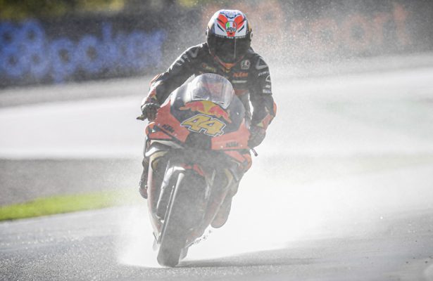 Rins second, Mir fifth, Morbidelli ninth, Quartararo 11th, Dovizioso 12th and Viñales in pitlane sets us up for a rollercoaster race day. Red Bull KTM Factory Racing’s Pol Espargaro picked up a phenomenal second pole position of 2020 after mastering the wet conditions in Q2 at the Gran Premio de Europa, the Spaniard slamming in a late 1:40.434 to head a front row covered by less than a tenth. Alex Rins (Team Suzuki Ecstar) starts second as the top title challenger, just 0.041 back,