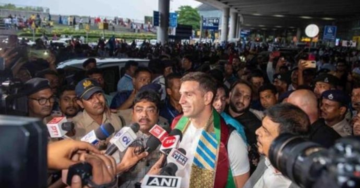 One of the prime cast members of Argentina’s historic FIFA World Cup triumph last year in Qatar, Emiliano ‘Dibu’ Martinez finally arrived in India on Monday.
